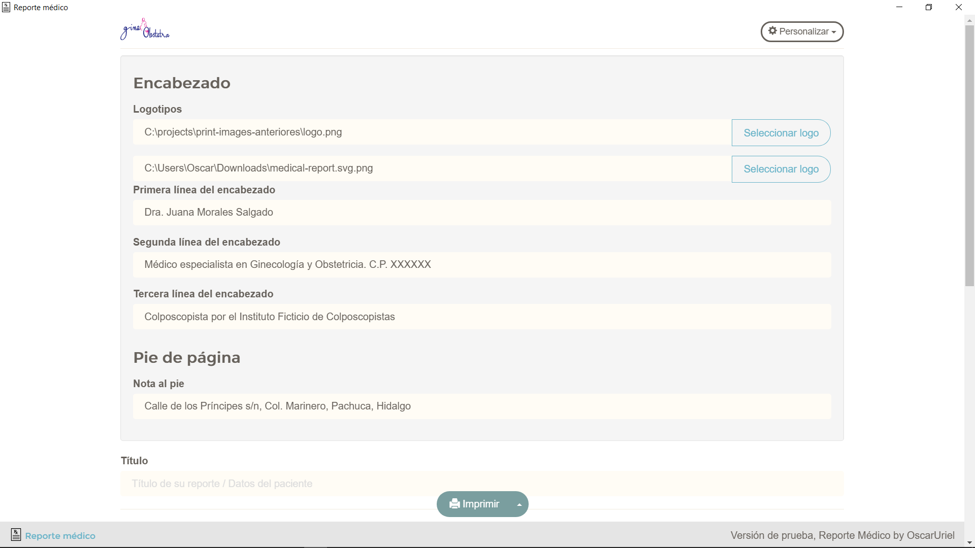 Prueba Reporte Médico by Natia, sin costo, tanto como lo desees